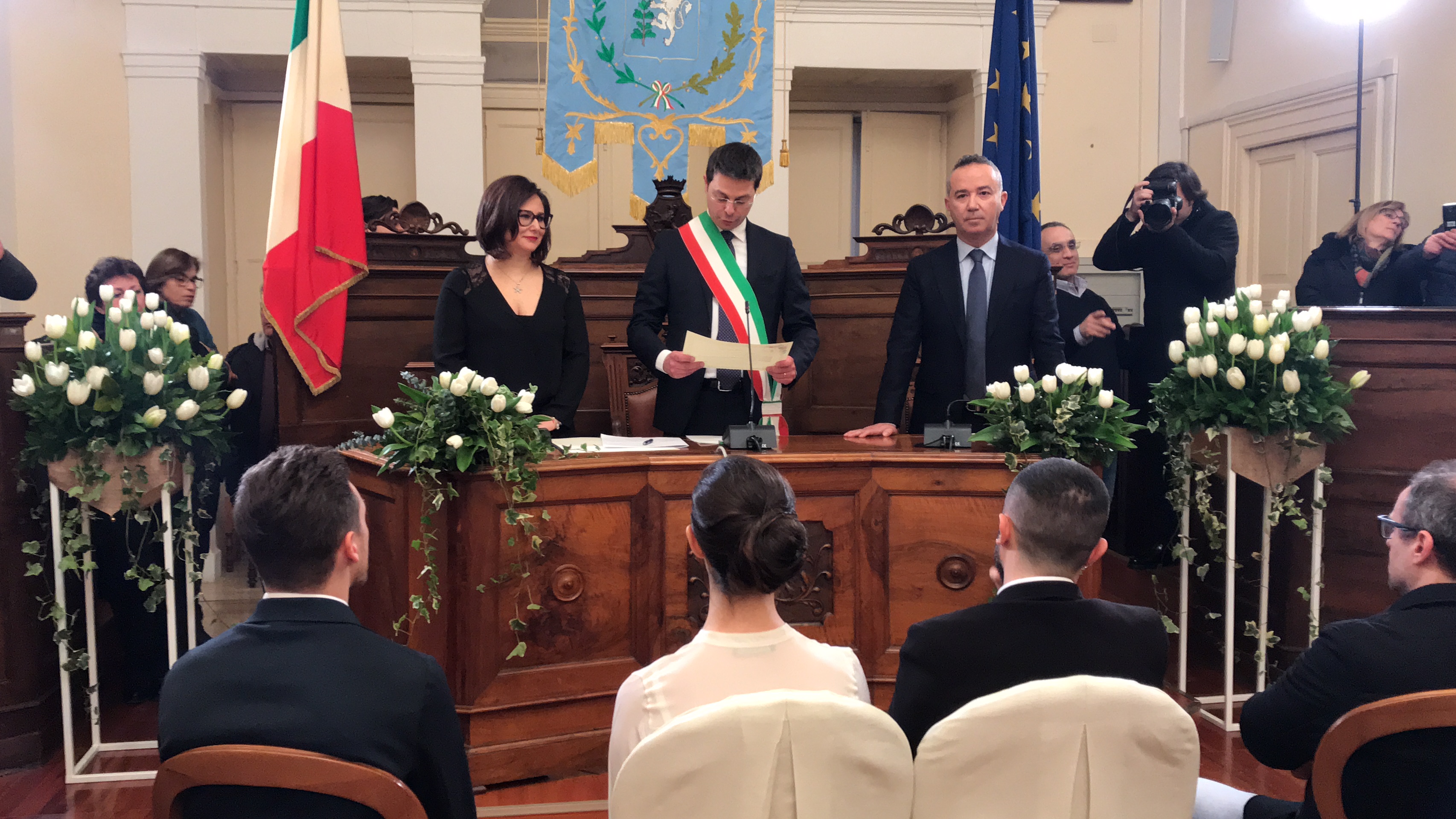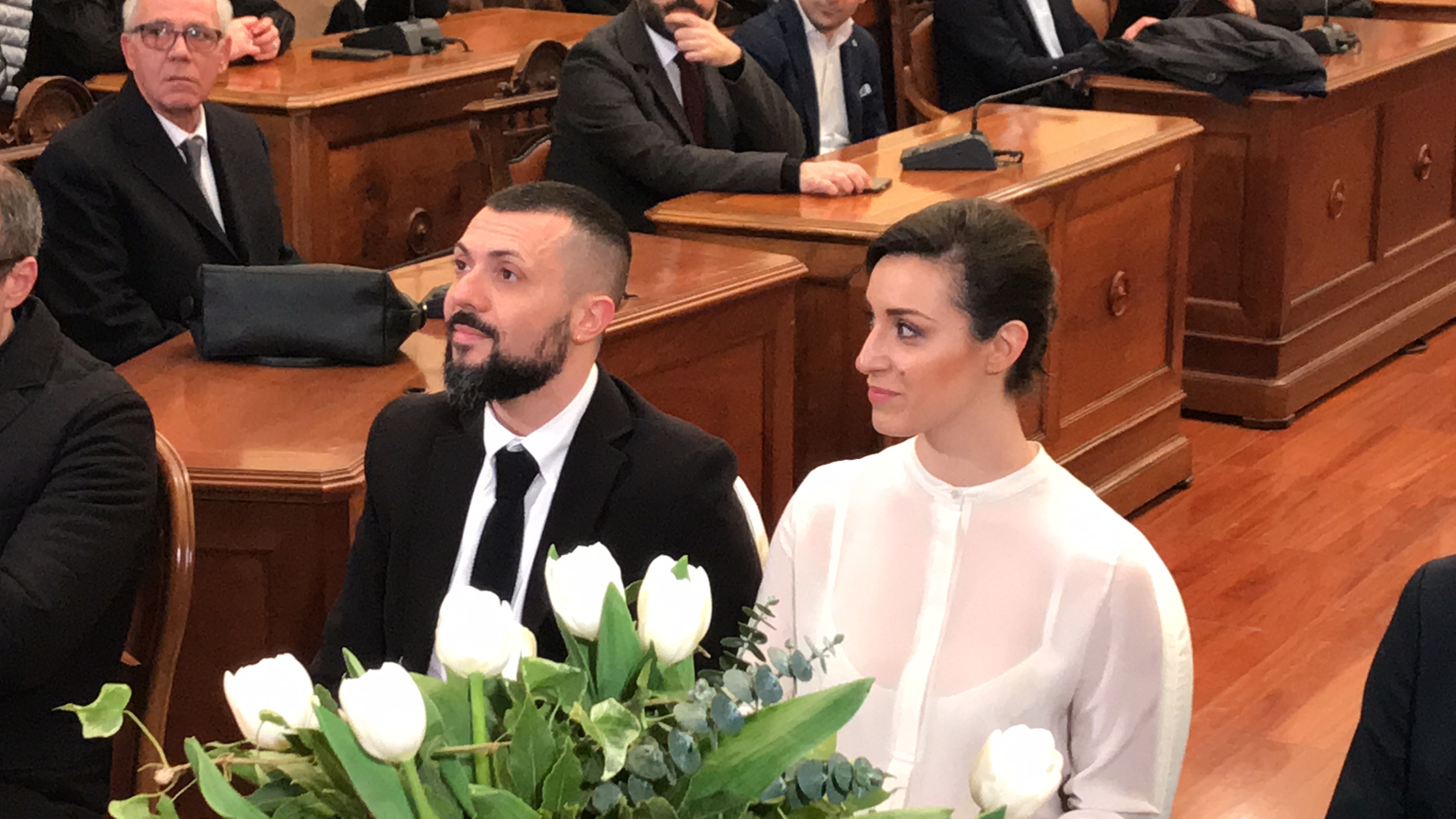 Una cerimonia sobria, aperta con un appassionato discorso di uno dei suoi più storici compagni di viaggio nella politica, ed il fatidico “si” pronunciato davanti al primo sindaco eletto dal Movimento 5 Stelle nella BAT. E’ il riassunto del matrimonio con rito civile dell’On. Giuseppe D’Ambrosio e della sua consorte Mariangela Laneve, avvenuto nel pomeriggio all’interno della Sala Consiliare del Comune di Andria davanti ad una nutrita partecipazione. La campagna elettorale, infatti, non ha spaventato il deputato uscente del Movimento 5 Stelle e ricandidato sia nel collegio uninominale di Andria che in quella proporzionale Puglia 04 come capolista, che per alcune ore ha deciso di metter da parte la politica per dedicarsi ad una questione strettamente personale nonostante i pochi giorni che manchino al voto.