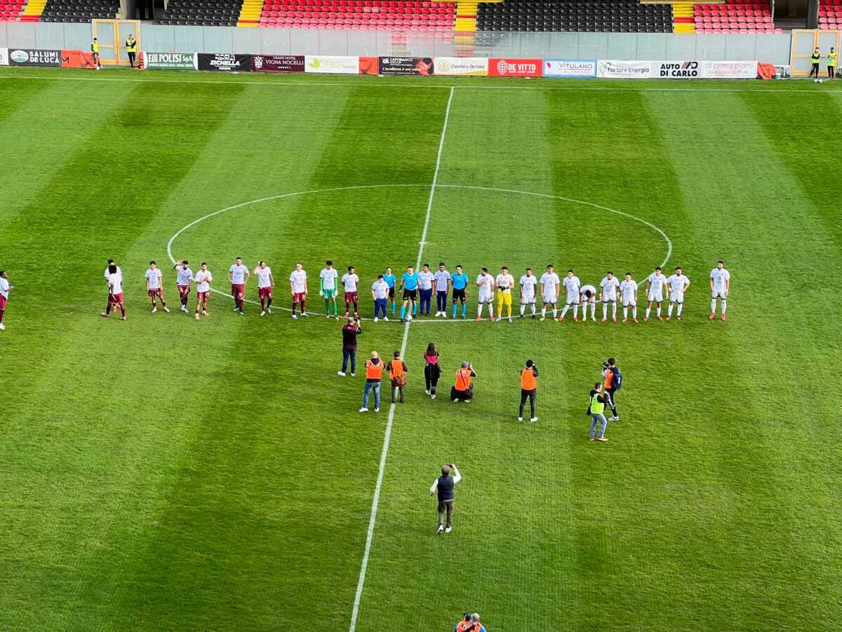 Scaringella però deve fare a meno di uomini importanti come Amoabeng e Banse oltre a Ronchi non al meglio. Squadra in campo con un 3-5-2 inedito: Trombino e Marquez, al rientro dopo la squalifica in avanti mentre Tagliarino schierato sulla destra esterno e Orlandi nel cuore del centrocampo assieme a Daqoune. C’è Tsiungaris dal primo minuto in difesa. Compierchio dall’altro lato predica continuità anche se perde Lazzazzera per infortunio. Al suo posto Ingrosso con Ceccarini nel cuore del centrocampo assieme a Schenetti e Coulibaly. C’è Puntoriere, non al meglio, al fianco di Foggia.