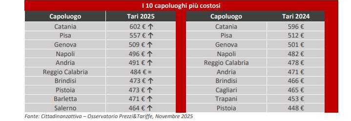 Più nel dettaglio, nella città federiciana c’è stata una crescita del 4,4% della TARI tra il 2024 e il 2025. A Barletta addirittura del 6,3%. Un confronto con le realtà del centro e del nord è impietoso: a Cremona, per esempio, si paga 196 euro; a Siena 222 euro. Si parla di una differenza abissale. Il fenomeno richiederebbe spiegazioni trasparenti e pubbliche nei confronti della cittadinanza da parte delle istituzioni.